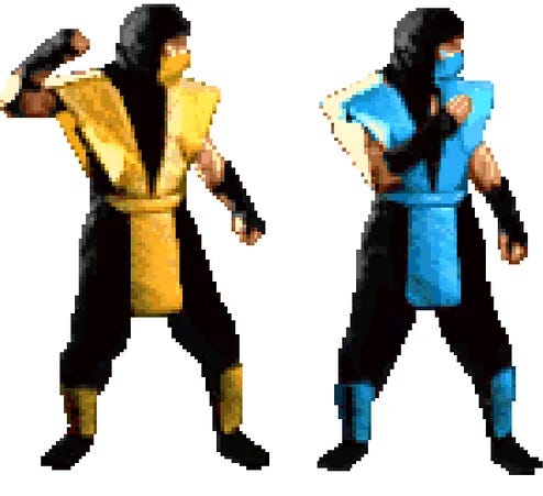 A great example of all this are the ninja characters (such as Sub-Zero and Scorpion) from Mortal Kombat. It’s not a franchise that I’m hugely familiar with. There were always aspects of it that I really liked, but funnily enough, I always thought that the focus on extreme violence and gore actually did it a disservice and degraded it (not to mention setting in on a course where it would have to constantly up the ante and become ever more disgusting and perverse for its increasingly desensitized audience). But anyway, there’s no doubt that when it came out, these ninja characters became instantly iconic and basically became the poster boys for the series, primarily due to their incredibly cool and easily recognisable costumes.